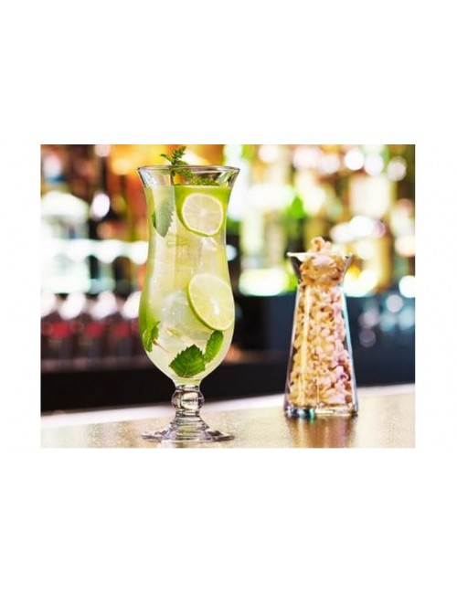 Il bicchiere alto e sagomato Hurricane mette le ali alla creatività e ai long drink con ghiaccio. Il profilo voluttuoso e le curve valorizzano i cocktail colorati a strati e i gelati multivitamine in voga al momento. Vale lo stesso per i pot-pourri di fiori secchi e petali colorati che creano ambienti e decorazioni dei tavoli diversi in ogni stagione.