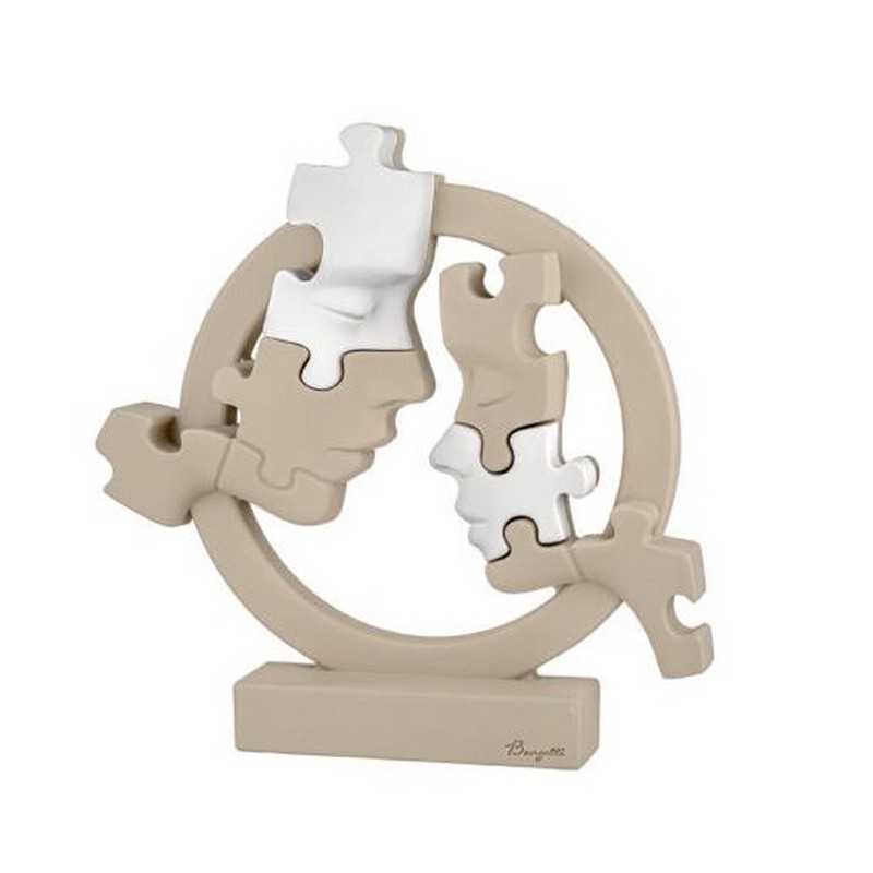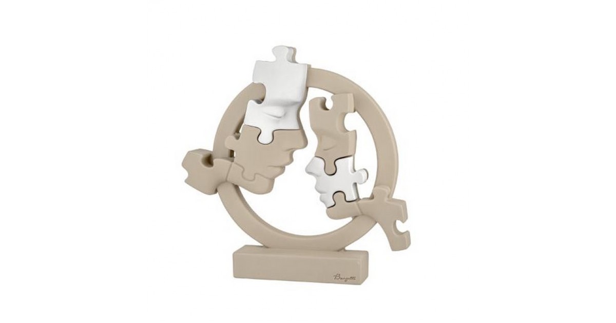 La scultura Visi Puzzle Cerchio della Bongelli Preziosi è l’espressione massima di un design moderno e significativo. Due profili che si completano e si fondono in un abbraccio circolare, rappresentando l’armonia, l’amore e la connessione perfetta tra due anime. Realizzata in finissimo marmorino, un materiale che unisce eleganza e durabilità, questa scultura è destinata a diventare il punto focale di ogni ambiente.