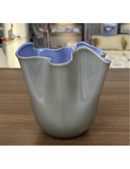 La suggestiva rielaborazione della tecnica Opalini del XV secolo lo rende unico nel colore. Il genio di Fulvio Bianconi lo rende inimitabile nella forma, plasmata come le gonne mosse dal vento. Tanto che di ogni Fazzoletto Opalini non ne esiste uno identico in tutto il mondo.