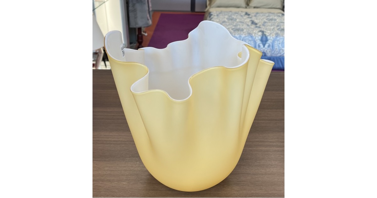 La suggestiva rielaborazione della tecnica Opalini del XV secolo lo rende unico nel colore. Il genio di Fulvio Bianconi lo rende inimitabile nella forma, plasmata come le gonne mosse dal vento.