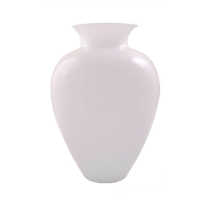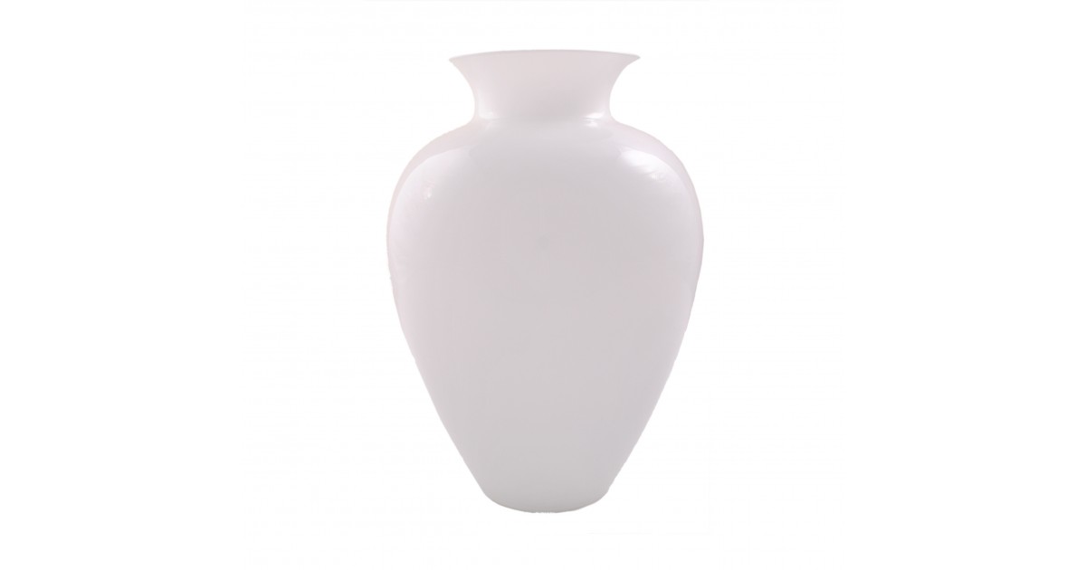 Ottenuto dalla sovrapposizione del lattimo con altri vetri, il vetro opalino è soffiato e lavorato a mano.