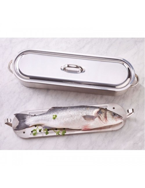 PESCIERA CON GRIGLIA E COPERCHIO CM. 45 IN ACCIAIO INOX PADERNO