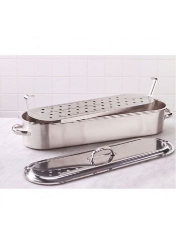 Progettata con precisione artigiana italiana, questa pesciera rettangolare introdotta nel 2003 è realizzata in robusto acciaio inossidabile che garantisce una distribuzione uniforme del calore e una facile pulizia. Il suo design minimalista e incontaminato nella tonalità acciaio le conferisce un'eleganza senza tempo, adatta a qualsiasi ambiente cucina. Che si tratti di cucinare pesce o preparare piatti deliziosi, questa pesciera si rivela un'alleata affidabile e versatile: