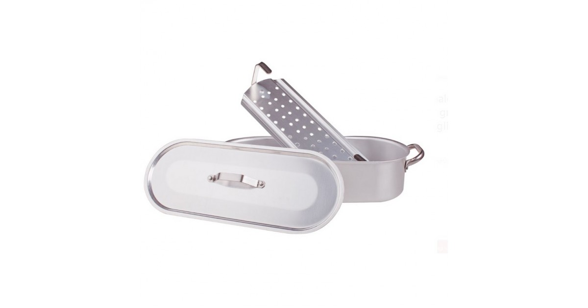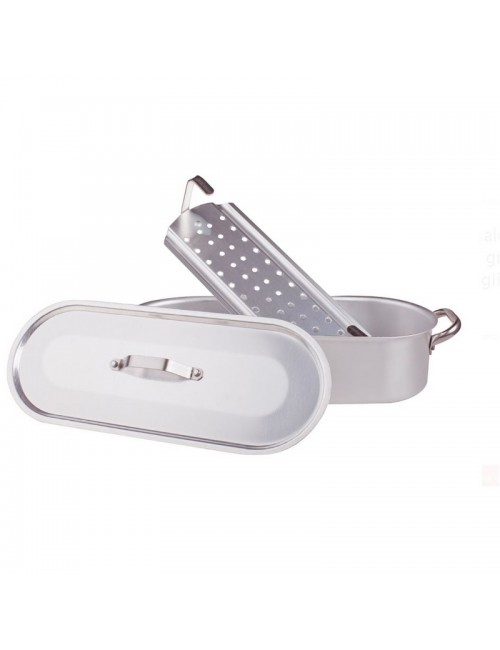 PESCIERA IN ALLUMINIO 60 CM. CON GRIGLIA E COPERCHIO, 2 MANIGLIE AGNELLI