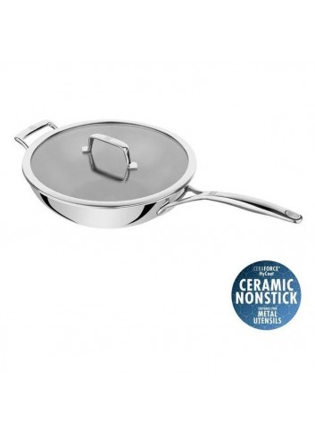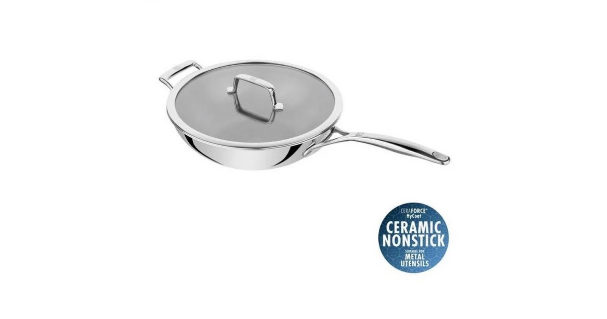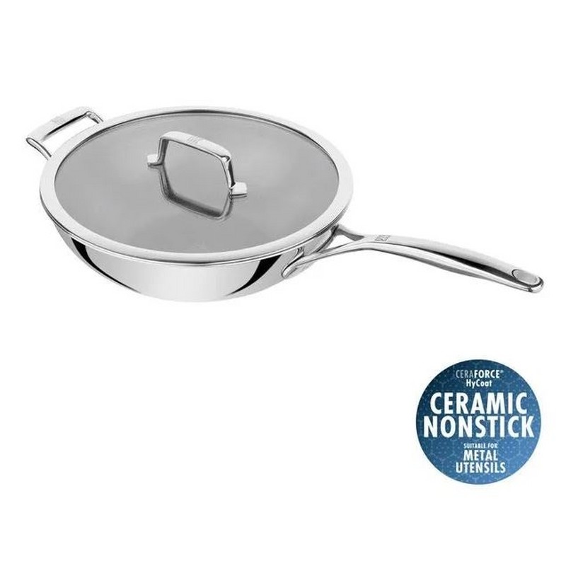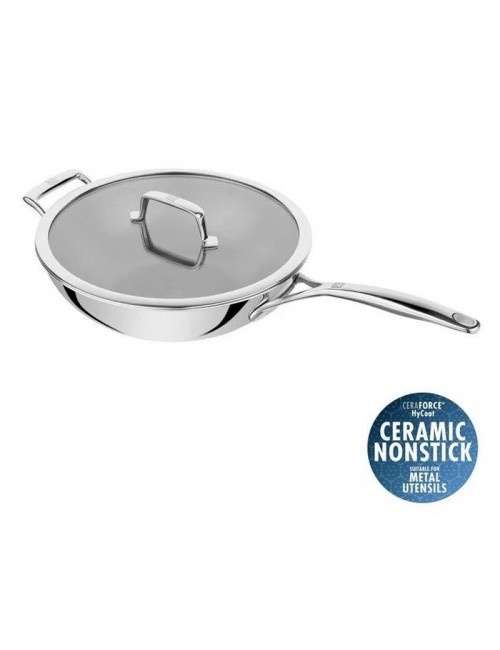 ZWILLING PEAK: nata per affrontare ogni sfida in cucina, giorno dopo giorno. L'innovativo rivestimento CERAFORCE HyCoat unisce i vantaggi delle pentole e padelle antiderenti alla robustezza dei modelli non rivestiti. Che si tratti di verdure delicate o di arrosti rosolati, questo wok con coperchio è pronto a tutto. Con i suoi 30 cm di diametro, è abbastanza capiente per cucinare per tutta la famiglia. Grazie all'acciaio inox rinforzato al titanio e al bordo rifinito, è estremamente durevole, resistente ai graffi, lavabile in lavastoviglie e utilizzabile anche con utensili in metallo. Pensata appositamente per la tua cucina: maneggevole, facile da lavare e sempre al massimo, giorno dopo giorno.