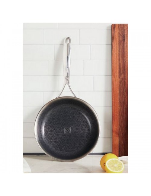 ZWILLING PEAK: nata per affrontare ogni sfida in cucina, giorno dopo giorno. L'innovativo rivestimento CERAFORCE HyCoat unisce i vantaggi delle padelle antiderenti alla robustezza degli utensili non rivestiti. Dalle verdure più delicate a bistecche cotte alla perfezione, questa padella è pronta a tutto. Con i suoi 28 cm di diametro, offre spazio in abbondanza per cucinare per tutta la famiglia. Grazie all'acciaio inox rinforzato al titanio e al bordo rifinito, è estremamente durevole, resistente ai graffi, lavabile in lavastoviglie e utilizzabile anche con utensili in metallo. Progettata per cucinare in tutta semplicità, facile da pulire e dalle alte prestazioni.