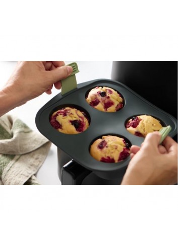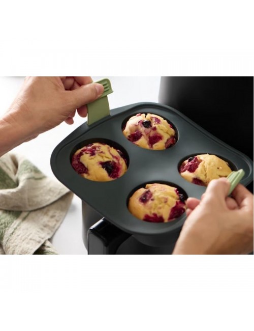 Divertiti a preparare deliziosi e soffici muffin con questo stampo per friggitrice ad aria! È dotato di manici estensibili e antiscivolo per una facile rimozione dalla friggitrice. Realizzato in silicone Platinum al 100%, consente di rimuovere rapidamente i muffin dallo stampo. Perfetto per friggitrici ad aria da 5 litri in su.