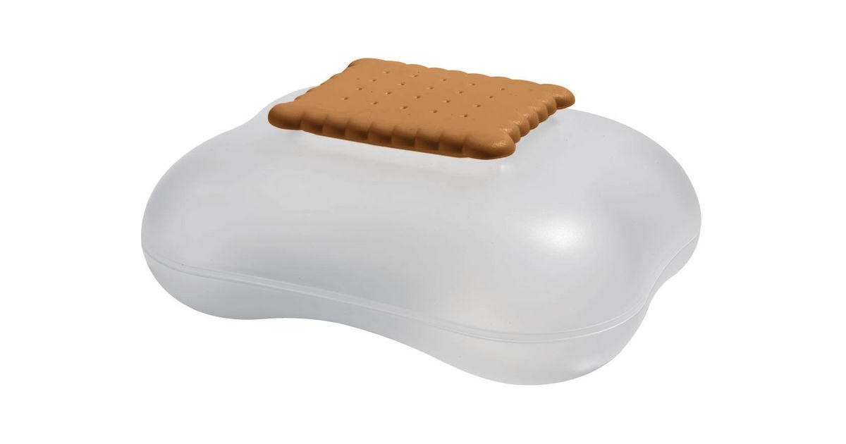 Oggetto che richiama espressamente quello che la psicanalisi ha definito il “codice bambino”, Mary Biscuit è una scatola per dolci in cui la forma riflette la funzione: si tratta di un “biscottone” il cui potere evocativo non si ferma alle forme morbide, arrotondate e materne ma coinvolge il tatto (il materiale traslucido è particolarmente piacevole al tocco) e anche l’olfatto: il coperchio infatti evoca il delicato aroma dei biscotti al burro.